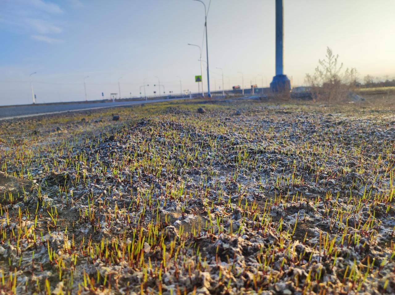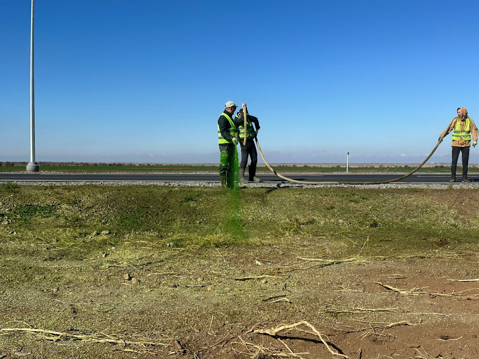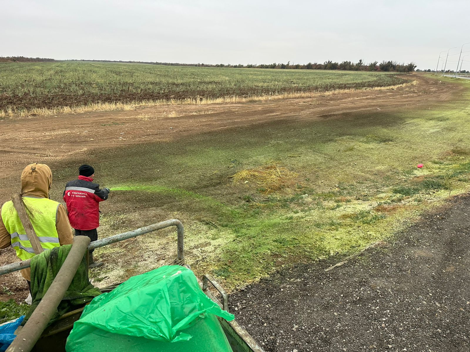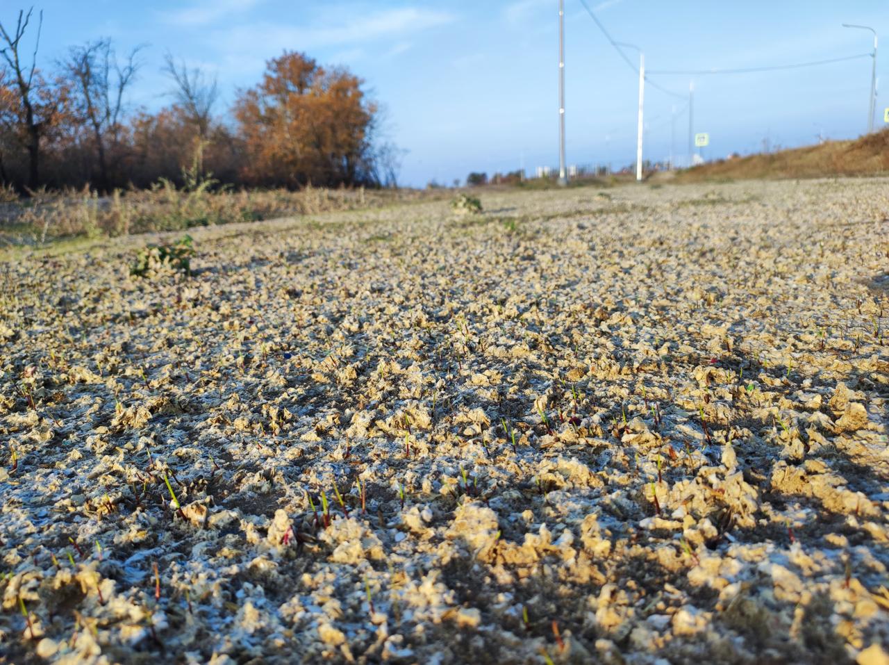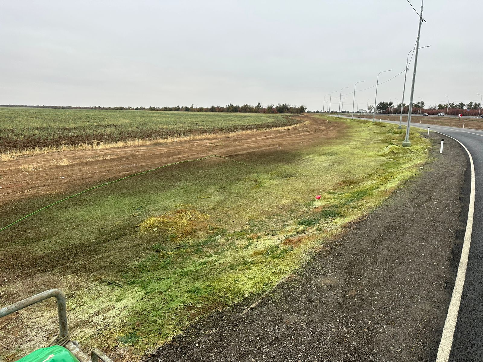 Гидропосев 400 000 кв.м. площади вдоль федеральной трассы близь рабочего поселка Новый Рогачик в Волгоградской области.