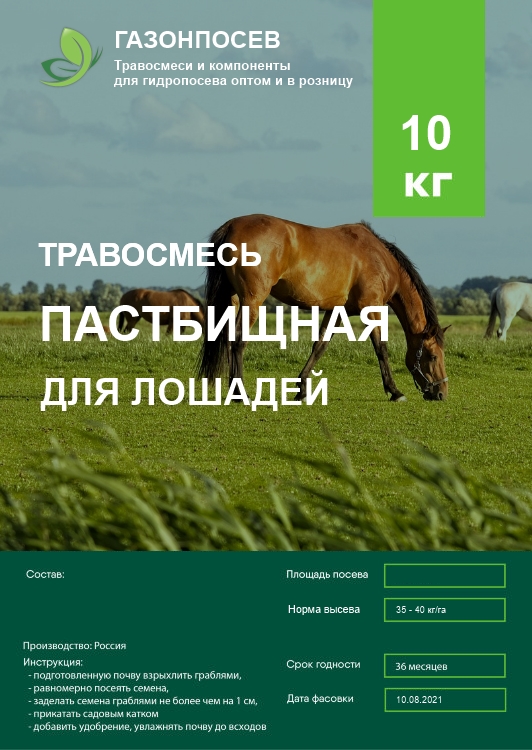 Травосмесь отлично подойдет для высева на пастбищах, предназначенных для выпаса лошадей. Обеспечивает ровный травостой без проплешин, образующихся при высоких нагрузках и низком стравливании.