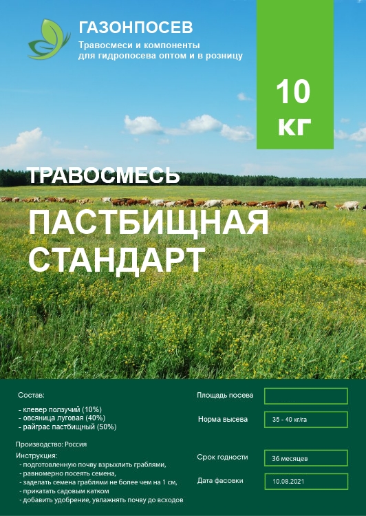 Классическая пастбищная травосмесь. Обеспечивает отличное качество и хорошую урожайность травостоя. Переносит неоднократное стравливание и подкосы, стернь отрастает быстро. Хорошо поедается скотом и быстро отрастает после стравливания или подкашивания.