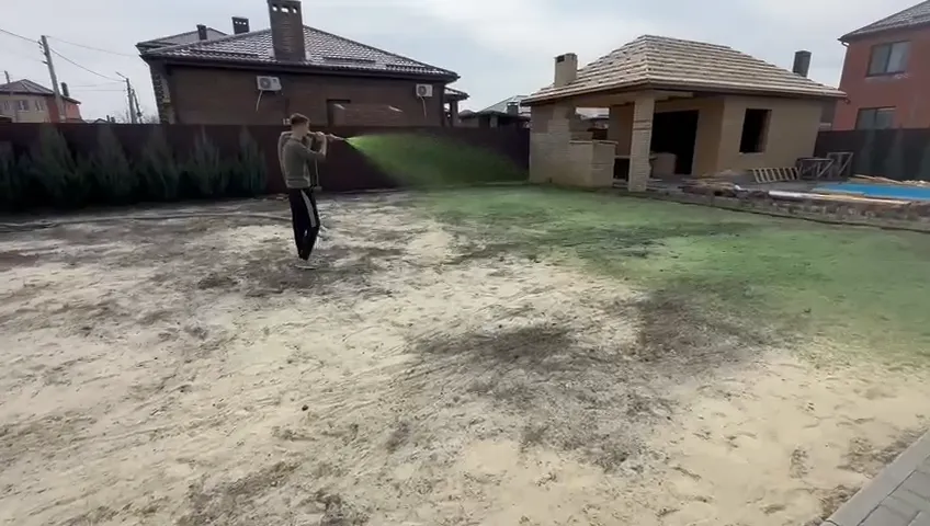 Полученная смесь под напором гидросеялки распыляется по площади, обеспечивая максимальное покрытие, а также набор полезных веществ для дальнейшего роста трав, входящих в состав смеси.